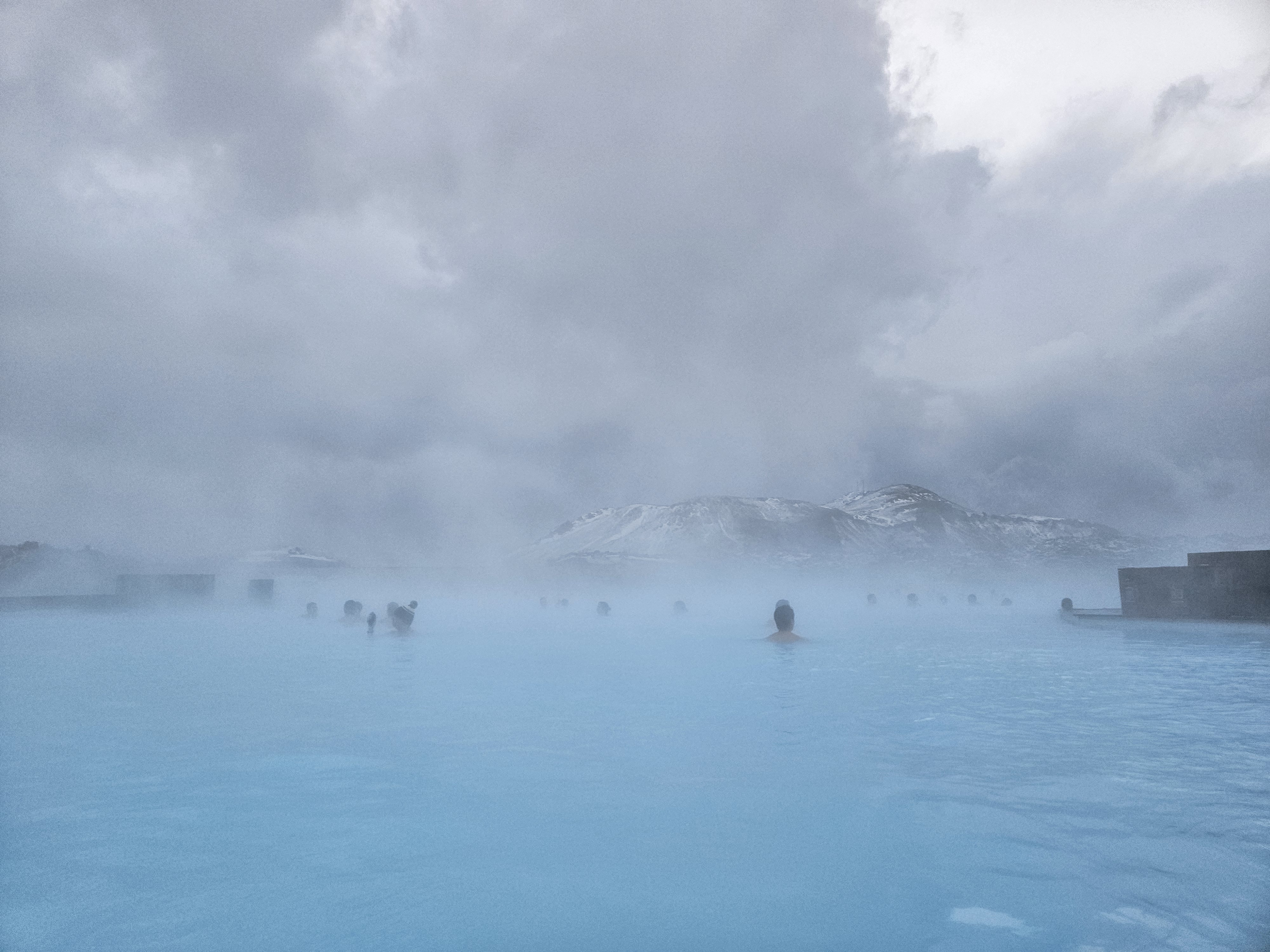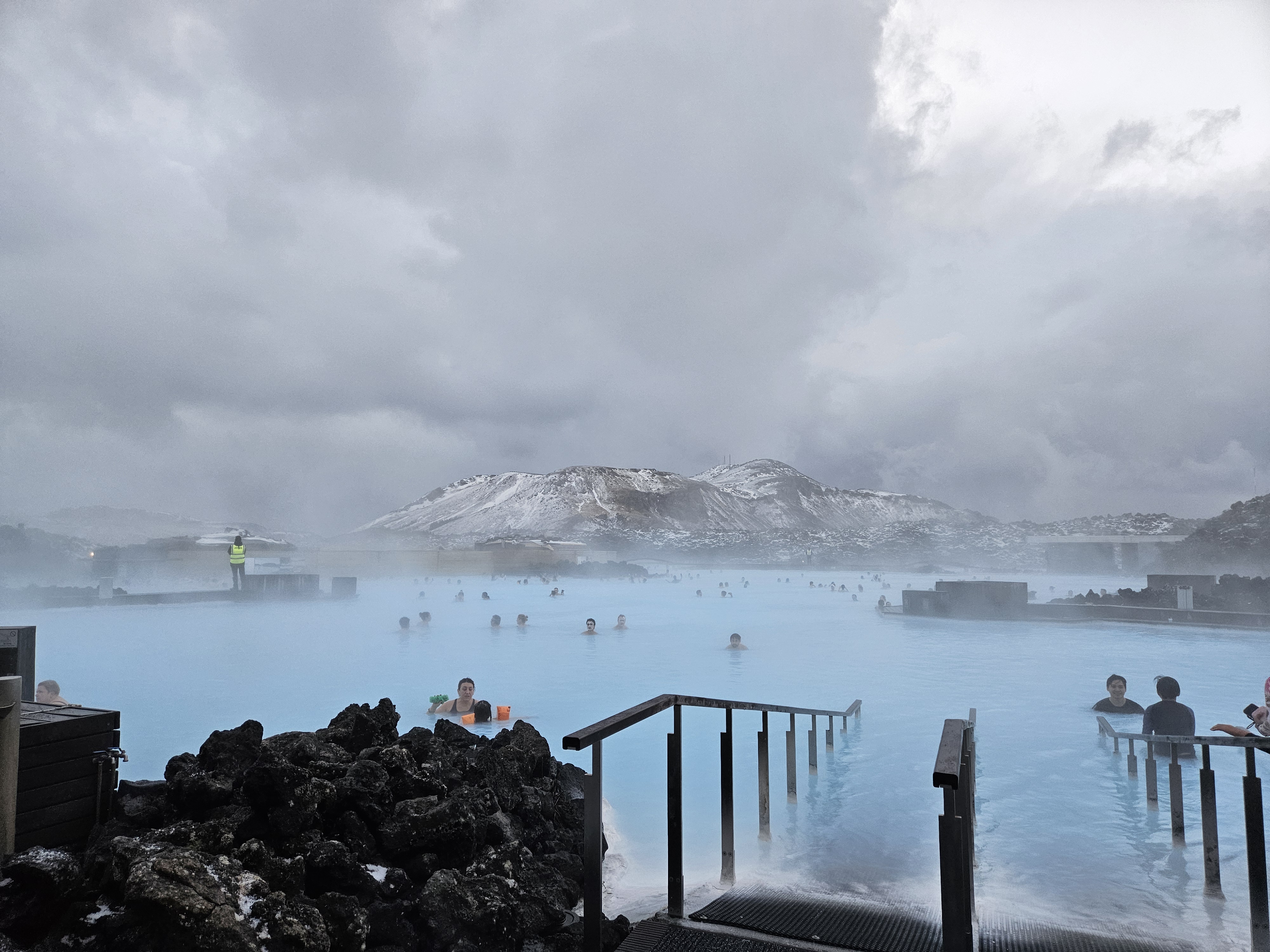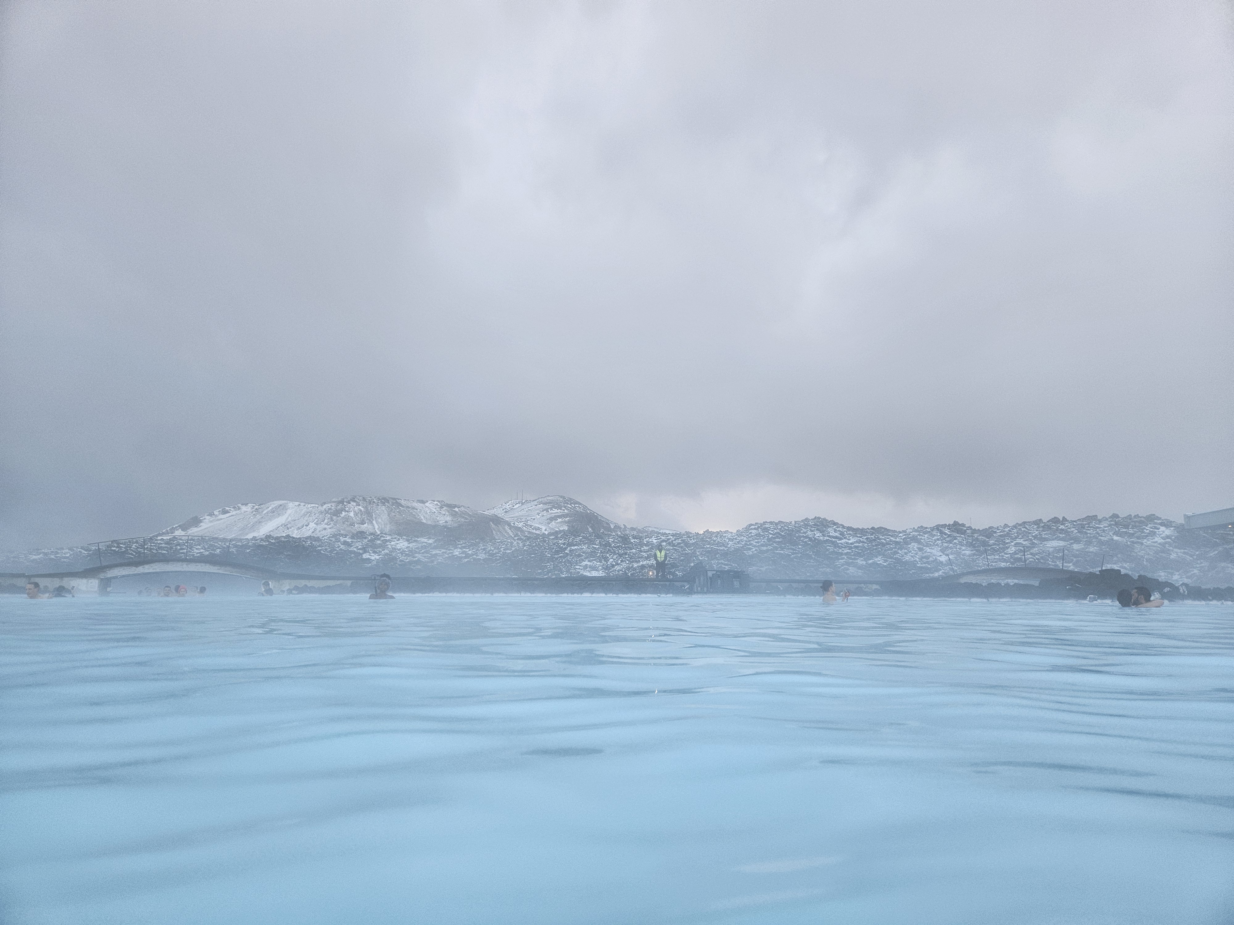 첫날부터 내내 목이 붓고 아팠는데 블루라군에서 두세 시간 목욕하고 나니까 씻은 듯이 나아서 신기했다. 이 이후로 목감기에 걸릴 때마다 저절로 블루라군에 가서 몸 좀 녹이다 오고 싶은 생각이 든다. 한 번 입장하면 하루 종일 시간을 보낼 수는 있는데 실내에 편안하게 쉴 수 있는 공간이 없어 오래 있을만한 환경은 아니었다. 그래서 두 시간 내내 사람이 없고 물이 그나마 더 따뜻하고 비바람을 막아주는 곳을 찾아 돌아다녔다. 안경을 끼고 핸드폰을 손에 든 채였는데, 여기는 렌즈와 휴대폰 방수케이스는 필수다.