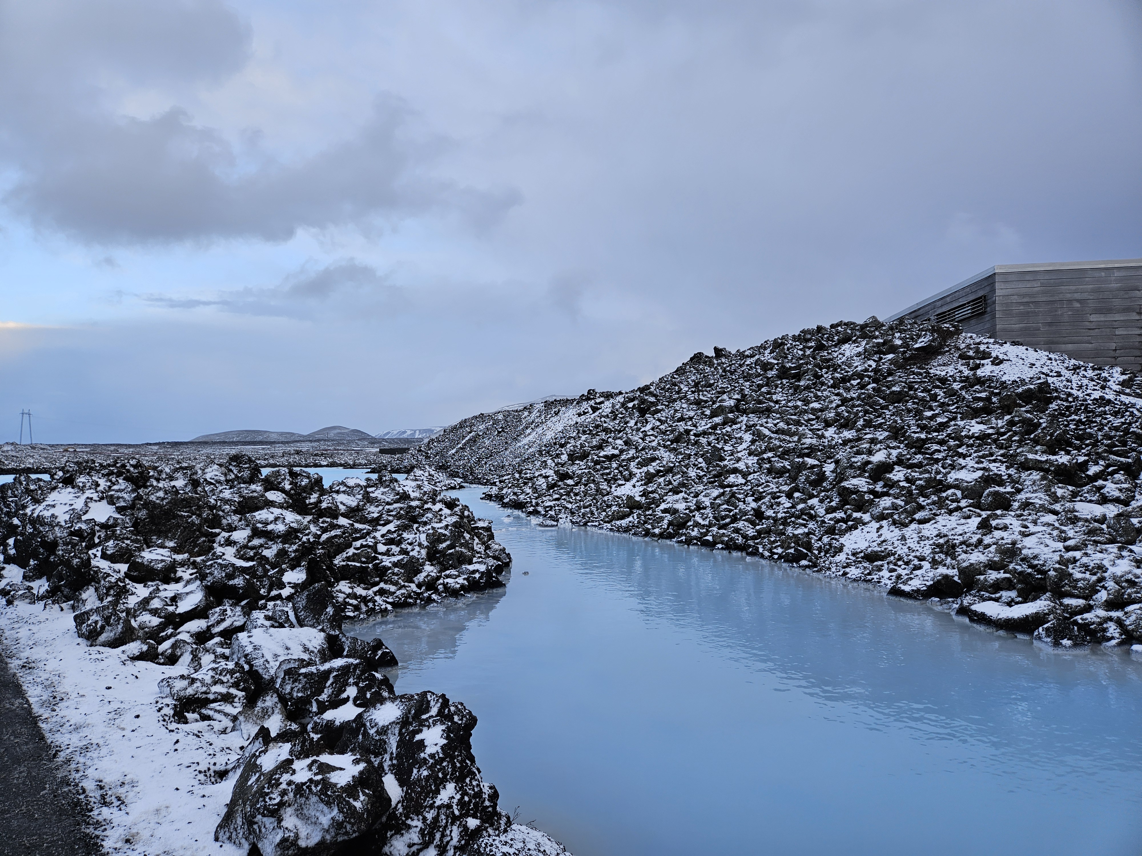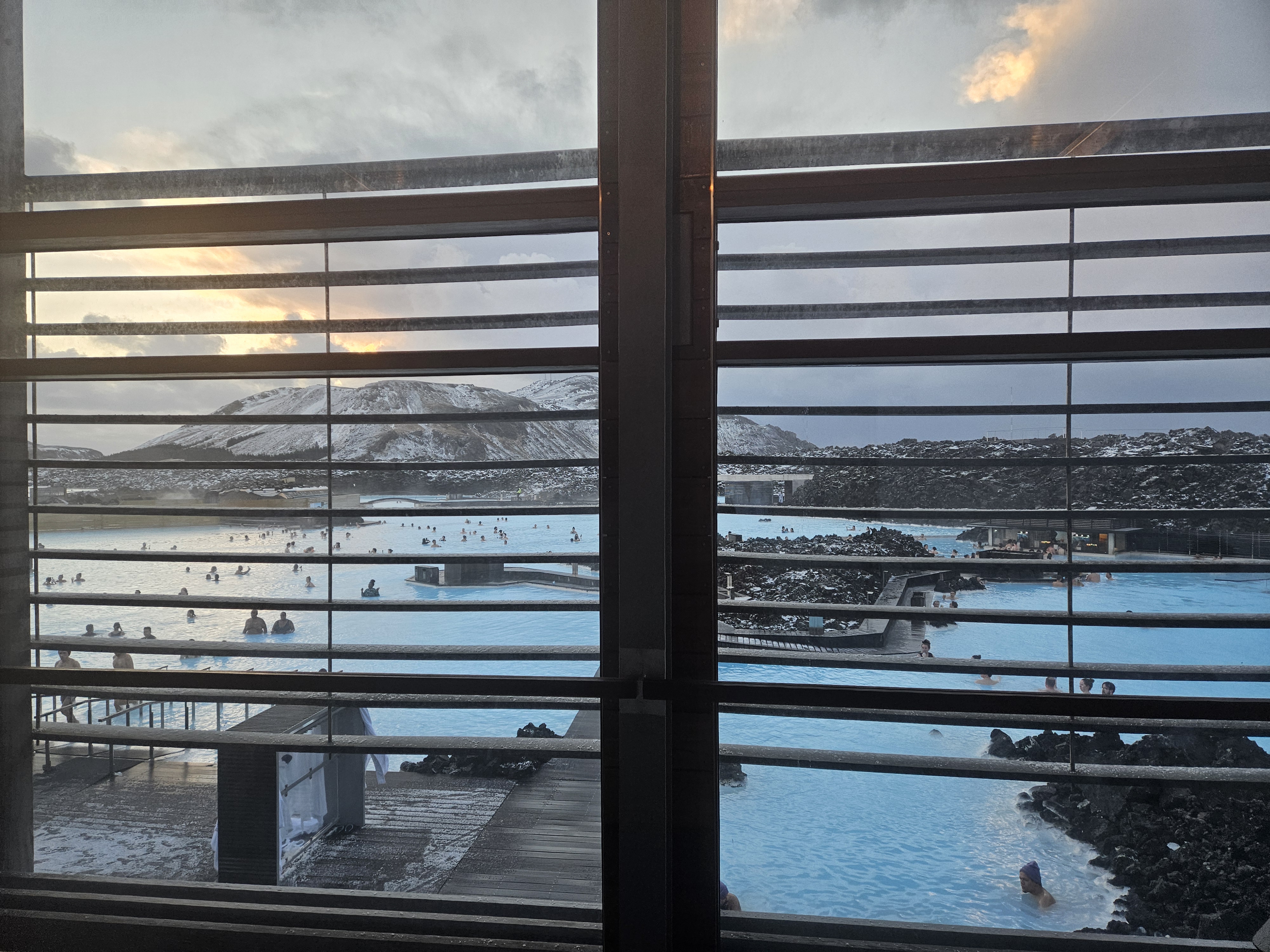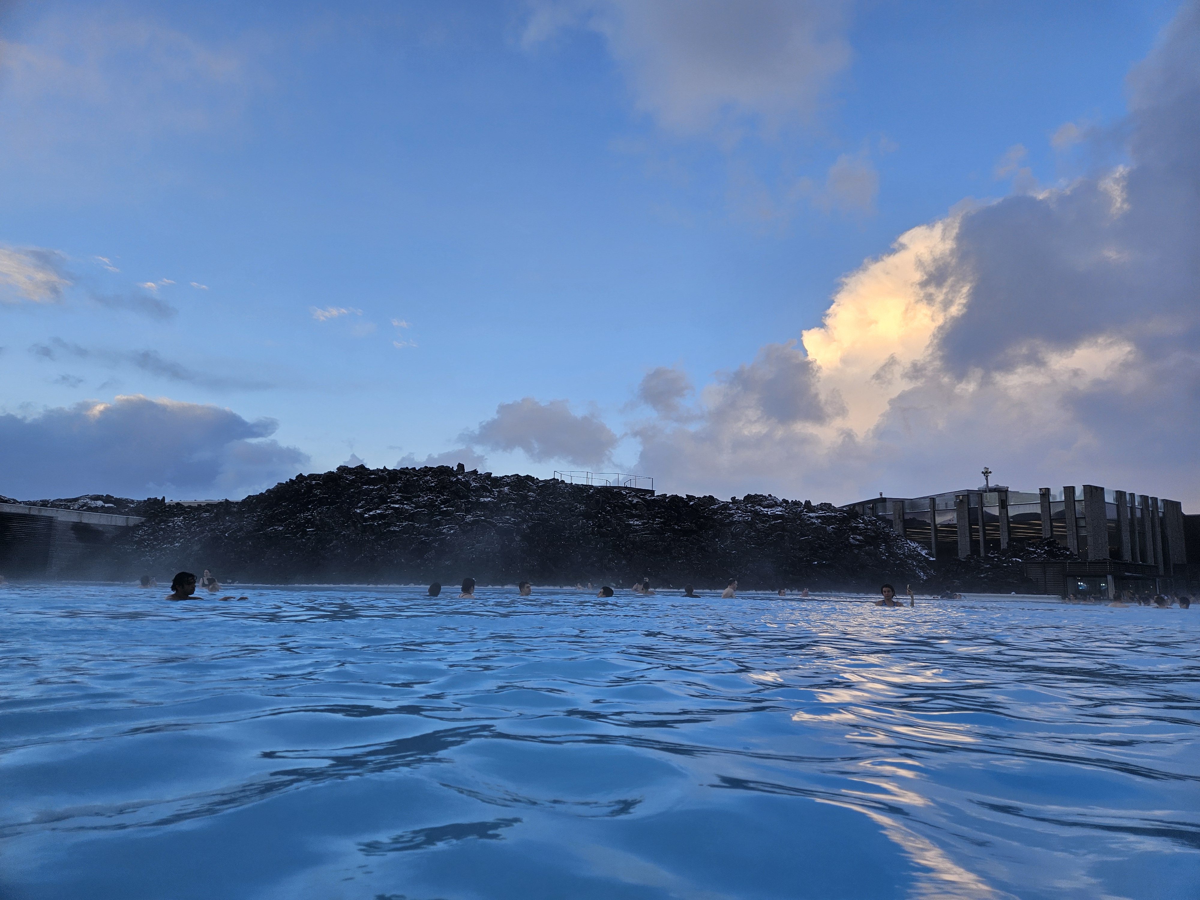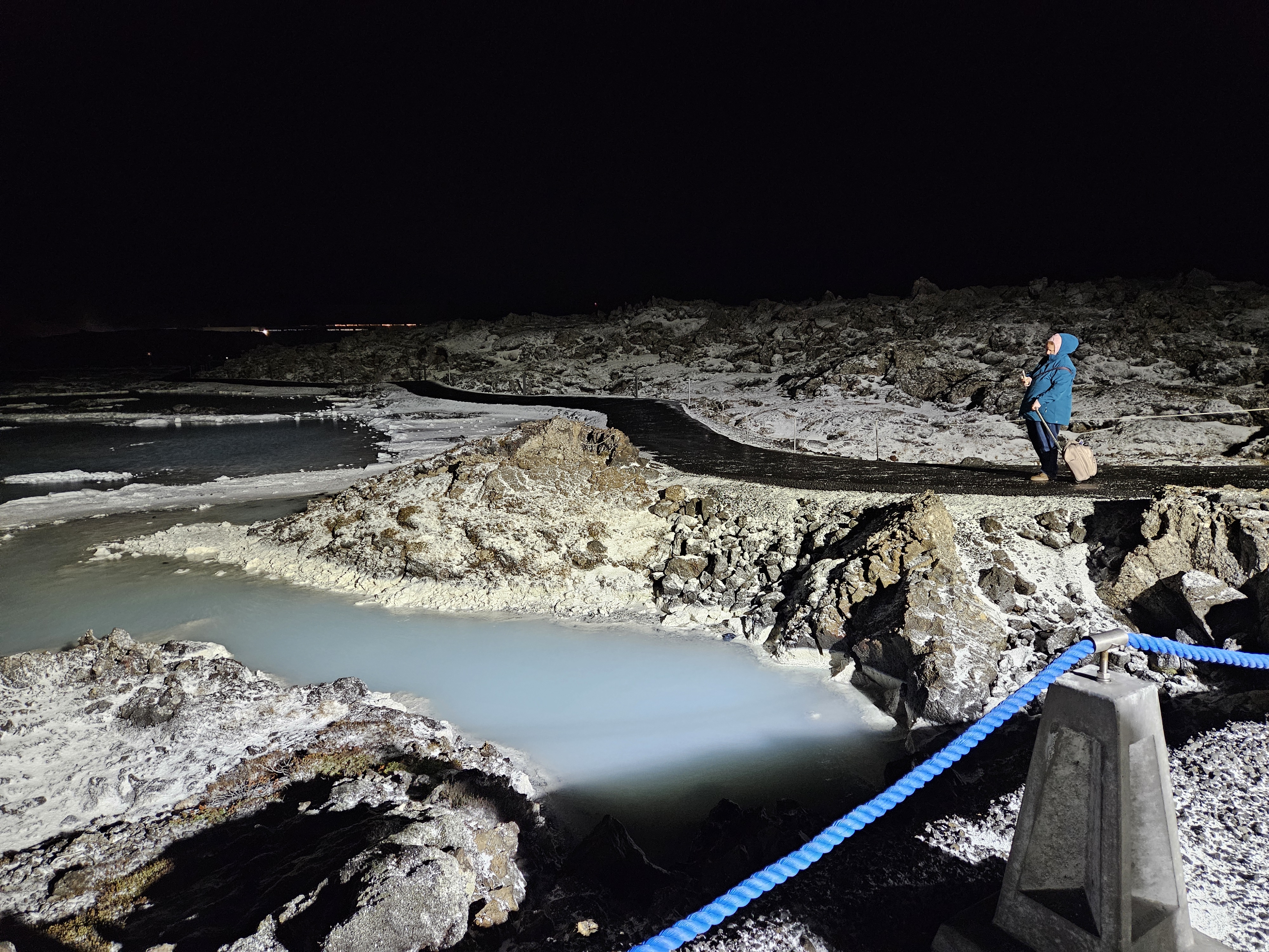 첫날부터 내내 목이 붓고 아팠는데 블루라군에서 두세 시간 목욕하고 나니까 씻은 듯이 나아서 신기했다. 이 이후로 목감기에 걸릴 때마다 저절로 블루라군에 가서 몸 좀 녹이다 오고 싶은 생각이 든다. 한 번 입장하면 하루 종일 시간을 보낼 수는 있는데 실내에 편안하게 쉴 수 있는 공간이 없어 오래 있을만한 환경은 아니었다. 그래서 두 시간 내내 사람이 없고 물이 그나마 더 따뜻하고 비바람을 막아주는 곳을 찾아 돌아다녔다. 안경을 끼고 핸드폰을 손에 든 채였는데, 여기는 렌즈와 휴대폰 방수케이스는 필수다.