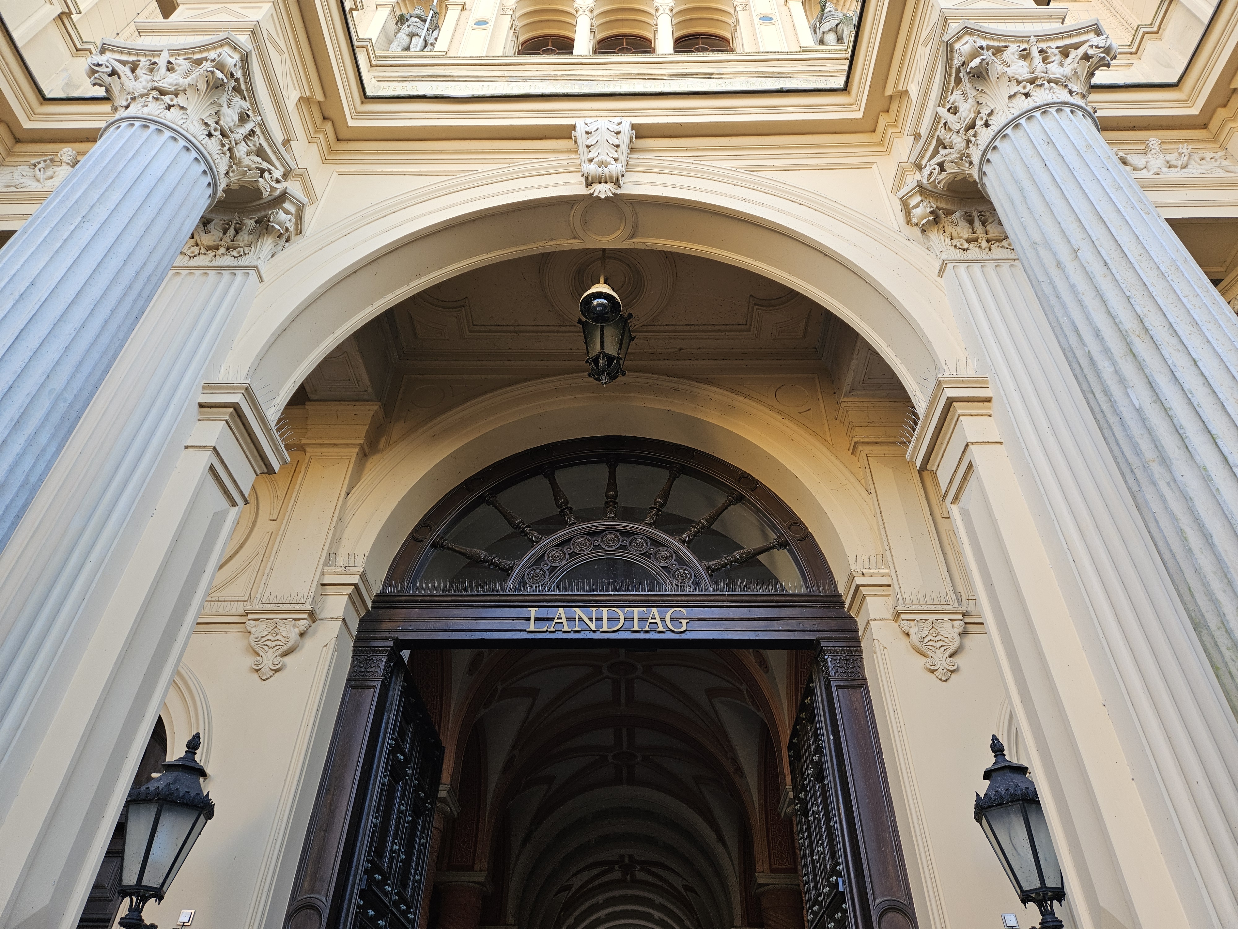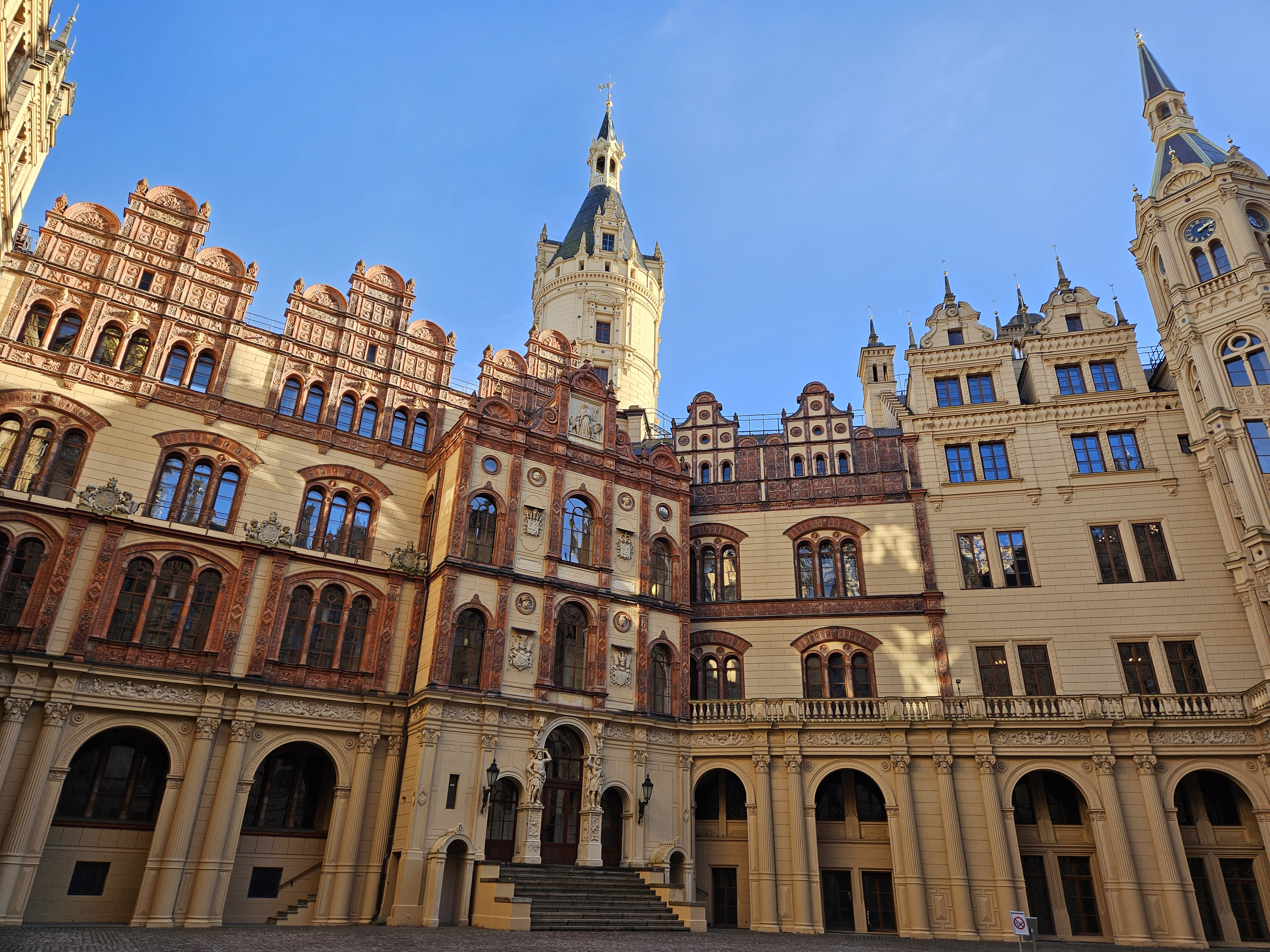 슈베린 성은 메클렌부르크/포어포메른 주의 주의회 건물로도 사용되고 있다. 입구에 Landtag(주의회)라고 적혀있다.