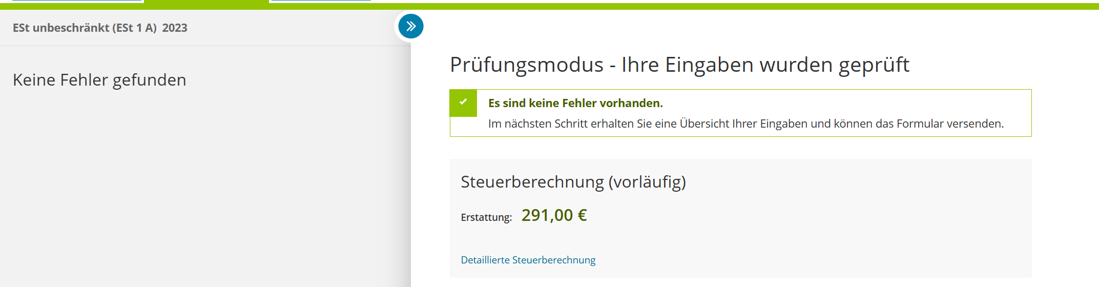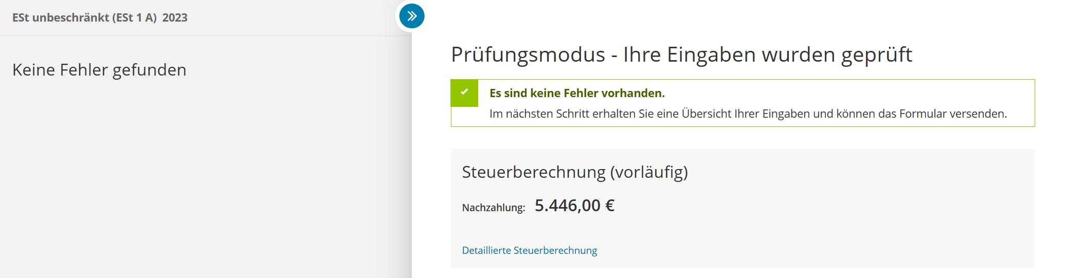 2023년: 잘못 입력해서 5446 EUR 더 내라고 나왔다가 수정 후 291유로 돌려받는다고 뜸.
